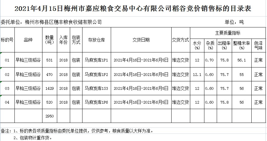文件下載:2021年4月15日梅州市梅縣區(qū)穗豐糧食收儲有限公司稻谷銷售