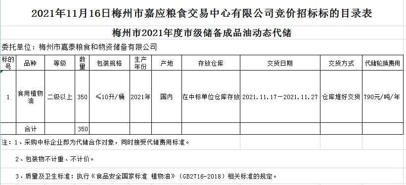 梅州市2021年度市級儲備成品糧油動態(tài)代儲及包干輪換費用公開招投標(biāo)公告