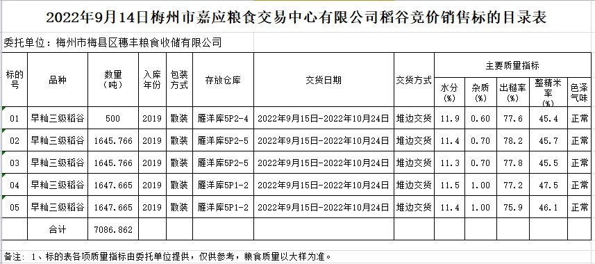 文件下載:2022年9月14日梅州市梅縣區(qū)穗豐糧食收儲有限公司稻谷銷售