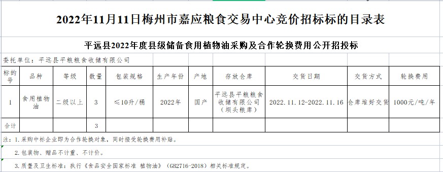 平遠(yuǎn)縣2022年度縣級(jí)儲(chǔ)備食用植物油采購及合作輪換費(fèi)用公開招投標(biāo)公告