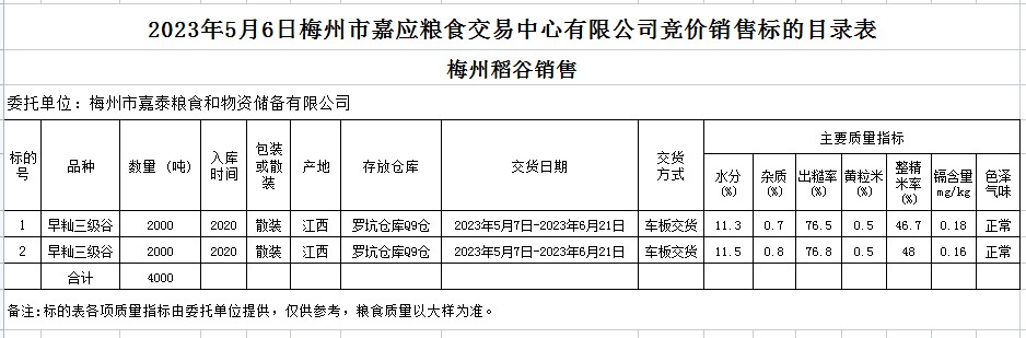 2023年5月6日梅州市嘉泰糧食和物資儲備有限公司稻谷銷售