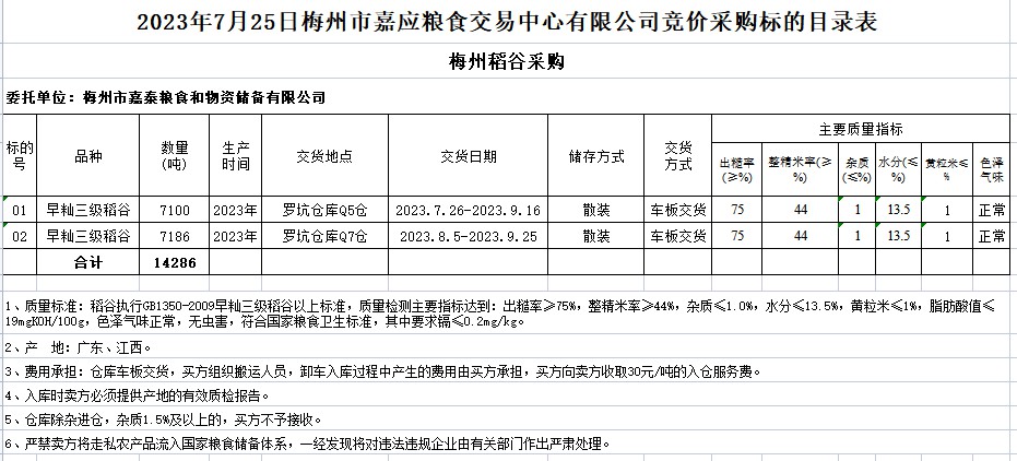 2023年7月25日梅州市嘉泰糧食和物資儲(chǔ)備有限公司稻谷采購