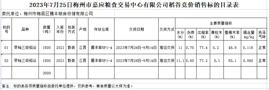 2023年7月25日梅州市梅縣區(qū)穗豐糧食收儲(chǔ)有限公司稻谷銷售