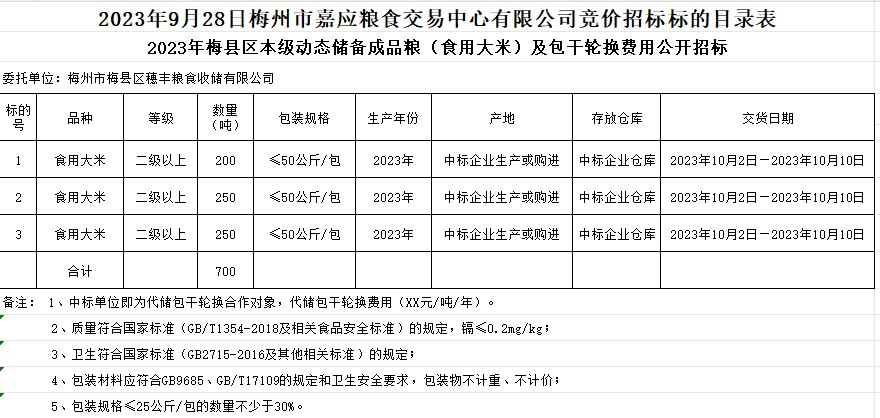 梅縣區(qū)2023年本級動態(tài)儲備成品糧采購及包干輪換費用公開招投標(biāo)公告