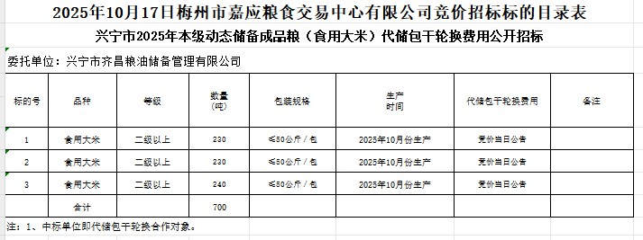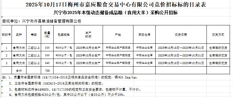興寧市2025年本級(jí)動(dòng)態(tài)儲(chǔ)備成品糧(食用大米)采購及代儲(chǔ)包干輪換費(fèi)用公開招標(biāo)公告